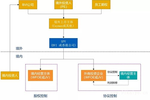 通常來說,有以下四個步驟實現(xiàn) VIE 結(jié)構(gòu): (一)設(shè)立海外第一層權(quán)益主體——BVI 公司 在英屬維爾京群島(BVI)注冊成立第一層權(quán)益主體 BVI 公司的原因為,BVI 對公司注冊的要求簡單,成立程序快捷、維續(xù)成本低廉、保密性高;寬松的外匯管制;無須繳付任何所得稅、預提稅、資本利得稅、資本轉(zhuǎn)移稅、繼承稅、遺產(chǎn)稅或財產(chǎn)稅。BVI 作為創(chuàng)始股東的持股主體,股東用自己 100% 持有的 BVI 公司持有其在開曼公司的股份,而非個人直接在開曼公司持股,若以后開曼公司有分紅或者出售股票所得收入,該項收入進入 BVI 公司而非個人,BVI 免稅且具保密性,股東避免了被立即征收個稅,具有遞延納稅或者可能免稅的功能。 (二)設(shè)立海外第二級權(quán)益主體——開曼公司 現(xiàn)紐約證券交易所、納斯達克交易所和香港聯(lián)交所等國際知名交易所都接受注冊在開曼群島、英屬維爾京群島(BVI)的公司掛牌上市。但因 BVI 注冊公司透明度低不易被接受,所以選擇開曼作為上市主體。 (三)設(shè)立海外第三級權(quán)益主體——香港殼公司 香港跟中國大陸有稅收優(yōu)惠政策,即《關(guān)于建立更緊密經(jīng)貿(mào)關(guān)系的安排》的英文簡稱。包括中央政府與香港特區(qū)政府簽署的《內(nèi)地與香港關(guān)于建立更緊密經(jīng)貿(mào)關(guān)系的安排》。設(shè)置一層香港,未來大陸公司向股東分紅等可能會享受一些稅收優(yōu)惠政策;從具體注冊操作層面講,用香港作為股東在境內(nèi)設(shè)立外商投資企業(yè)(WFOE),需要對股東進行公證,而香港公司的公證費用和時間成本,均比對開曼進行公證節(jié)約很多。 (四)香港殼公司在境內(nèi)設(shè)立 WFOE(Wholly Foreign Owned Enterprise) WFOE與境內(nèi)運營實體公司簽訂一系列協(xié)議,達到利潤轉(zhuǎn)移及非股權(quán)控制的目的。 |