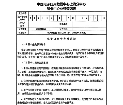 進出口權(quán)證辦理——電子口岸卡辦理需準(zhǔn)備材料如下: (1)填寫《A 類業(yè)務(wù)登記表》; (2)填寫《中國電子口岸企業(yè)情況登記表》; (2)營業(yè)執(zhí)照副本原件和復(fù)印件; (3)對外貿(mào)易經(jīng)營者登記備案表原件和復(fù)印件; (4)報關(guān)單位注冊登記證書原件和復(fù)印件; (5)“貿(mào)易外匯收支企業(yè)名錄” 備案表【即《外匯網(wǎng)上業(yè)務(wù)開通》】原件和復(fù)印件; (6)法人代表有效證件復(fù)印件; (7)新增操作員卡人員身份證原件和復(fù)印件; (8)外商投資企業(yè)批準(zhǔn)證書或備案證明(備案回執(zhí))原件和復(fù)印件。 2、辦理地點: 浦東新區(qū)陸家嘴西路153號浦東海關(guān)一樓(電子口岸大廳) |
