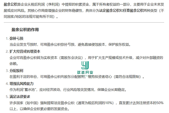 什么是任意盈余公積 任意盈余公積是指企業(yè)經(jīng)股東大會或類似機構(gòu)批準按照規(guī)定的比例從凈利潤中提取的盈余公積。任意盈余公積的提取比例由企業(yè)自行確定,國家有關(guān)法規(guī)不作強制規(guī)定。 這里應(yīng)當注意,因為我國有關(guān)外商投資企業(yè)法律的特別規(guī)定,外商投資企業(yè)盈余公積的組成內(nèi)容與一般企業(yè)和股份有限公司有所不同,具體包括以下內(nèi)容: 1.儲備基金 2.企業(yè)發(fā)展基金 3.利潤歸還投資 以上是玖邀開業(yè)網(wǎng)小編為您整理的關(guān)于什么是任意盈余公積的內(nèi)容,希望對您有所幫助。 |