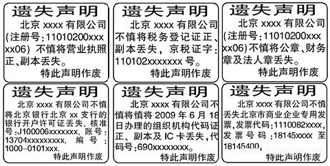 營業(yè)執(zhí)照掛失登報收費多少錢 營業(yè)執(zhí)照掛失登報收費200左右。具體要看你登什么報紙了,每家報紙的計價方式都不一樣,有的按字?jǐn)?shù),有的按證件,有貴的,有便宜的。如果證件較多的,建議登按字?jǐn)?shù)計價的報紙,但也要看你所在的地區(qū)報紙有沒有按字?jǐn)?shù)計價的。根據(jù)法律規(guī)定,營業(yè)執(zhí)照遺失或毀損的,應(yīng)當(dāng)向登記機關(guān)申請補領(lǐng)或者更換。 營業(yè)執(zhí)照遺失的,還應(yīng)當(dāng)在公開發(fā)行的報刊上聲明作廢。 補辦營業(yè)執(zhí)照需要哪些材料 1、法定代表人簽署的營業(yè)執(zhí)照遺失補領(lǐng)申請報告; 2、公司簽署的《指定代表或者共同委托代理人的證明》及指定代表或委托代理人的身份證復(fù)印件; 3 、刊登營業(yè)執(zhí)照遺失并聲明作廢公告的報紙報樣。 補辦營業(yè)執(zhí)照需要多久 (一)營業(yè)執(zhí)照一般在當(dāng)天補辦完畢。 (二)根據(jù)《企業(yè)法人登記管理條例》第三條規(guī)定,個體工商戶營業(yè)執(zhí)照補辦:向原登記或經(jīng)營地的工商行政管理機關(guān)報告并登報掛失。掛失后,才可以向原發(fā)照機關(guān)申請補發(fā)。 以上是玖邀開業(yè)網(wǎng)小編為您整理的關(guān)于營業(yè)執(zhí)照掛失登報收費多少錢的內(nèi)容,希望對您有所幫助。 |