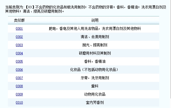 第3類商標(biāo)經(jīng)營范圍及內(nèi)容明細 根據(jù)我國《商標(biāo)法》第二十二條規(guī)定,商標(biāo)注冊申請人應(yīng)當(dāng)按規(guī)定的商品分類表填報使用商標(biāo)的商品類別和商品名稱,提出注冊申請。 規(guī)定所指的商品分類表,即《商標(biāo)注冊用商品和服務(wù)國際分類》。該分類表是基于尼斯分類第十版制定的,把商標(biāo)注冊類別劃分為45大類,其中1-34類是商品分類,35-45是服務(wù)分類。那么,商標(biāo)分類表的第3類商標(biāo)內(nèi)容明細是什么? 第3類主要包括清潔制劑和化妝品。經(jīng)營范圍及內(nèi)容明細如下: 【0301組】肥皂,香皂及其他人用洗潔物品,洗衣用漂白劑及其他物料 030007杏仁肥皂;030009洗滌上光粉;030010洗衣用漿粉;030010洗衣用淀粉;030012肥皂;030013紡織品上光皂;030014洗衣用上藍劑;030017剃須皂;030026漂白鹽;030027漂白堿;030028洗衣用漂白劑;030029洗衣上光劑;030034潤發(fā)乳;030089漂白水;030093洗滌用皂樹皮;030098洗衣浸泡劑;030098浸洗衣服制劑;030123潔膚乳液;030124洗衣劑;030125梳洗用制劑;030127光滑劑(上漿);030134洗發(fā)液;030143汗足皂;030149除臭皂;030152香皂;030163防汗皂;030174家庭洗衣用亮色化學(xué)品;030175非醫(yī)用沐浴鹽;030193洗衣用織物柔順劑;030205干洗劑;030218個人清潔或祛味用下體注洗液;030223干洗式洗發(fā)劑;030230非醫(yī)用洗浴制劑;030231護發(fā)素;030238不含藥物的個人私處清洗液;030243非醫(yī)用洗眼劑;030244個人清潔或祛味用陰道洗液;030247家用漂白劑(脫色劑);030251浸清潔制劑的嬰兒濕巾;030260洗衣用防染色片;030261干衣機用抗靜電紙;C030001洗手膏;C030002洗發(fā)粉;C030003香波;C030004洗發(fā)軟皂;C030005柔發(fā)劑;C030007洗面奶;C030008浴液;C030009浴鹽;C030067洗衣粉;液體浴皂;洗衣用皂液;沐浴劑泡騰片;非藥用足部洗液;個人清潔用鼻腔清洗劑;衣服用合成洗滌劑;衣服用防靜電噴霧劑;嬰兒泡泡浴液;裝有洗衣劑的洗衣球;個人用紙肥皂;浴珠(珠狀沐浴劑);化妝用沐浴油;洗手和洗臉用液體肥皂;頭發(fā)干洗粉?;洗衣用水軟化劑;香薰沐浴鹽;個人用紙香皂;干衣機用抗靜電片;沐浴用晶鹽;護發(fā)用浴油;嬰兒用洗發(fā)劑;洗衣用蠟;淋浴和沐浴用泡泡浴液;浸有皮膚清潔液的紙巾;非藥物泡泡浴液;顆粒皂;含潔膚劑紙巾;淋浴和沐浴用啫喱;洗衣用衣物柔順劑;潔膚霜(化妝品);洗發(fā)劑;身體用膏狀肥皂;杏仁皂;家用肥皂;洗衣液;洗衣用肥皂;洗衣用海藻膠;洗衣用清潔劑;塊狀肥皂;洗手液;潔膚液;潔面磨砂膏;肥皂粉;肥皂膏;干洗制劑;淋浴啫喱;美容皂;個人用肥皂;護發(fā)膏;非藥物沐浴鹽;洗發(fā)香波;洗面劑;化妝用浴鹽;沐浴乳;沐浴油;泡泡浴液;足浴用液體肥皂;沐浴啫喱;沐浴露;嬰兒香波;嬰兒用護發(fā)素;皮膚清潔制劑;浴皂;液體肥皂;織物柔軟劑。 【0302組】清潔、去漬用制劑 030005刮面石(收斂劑);030022白堊粉;030038清潔用火山灰;030067清潔用白堊;030068去污劑;030072清洗用洗滌堿;030075非生產(chǎn)操作用、非醫(yī)用的去污劑;030076擦洗溶液;030077非生產(chǎn)過程中用的脫脂劑;030081家用除水垢劑;030083家用抗靜電劑;030085去漆劑;030087去色劑;030089次氯酸鉀;030104清潔制劑;030117清潔用油;030126擋風(fēng)玻璃清洗劑;030138墻紙洗滌劑;030153蘇打堿液;030157脫脂用松節(jié)油;030158除蠟用松節(jié)油;030167揮發(fā)堿(氨水)(去污劑);030167氨水(揮發(fā)性堿)(去污劑);030168明礬石(收斂劑);030170除銹制劑;030179去顏料制劑;030195疏通下水道制劑;030206地板蠟清除劑(刷凈劑);030209用于清潔和除塵的罐裝壓縮空氣;030211浸清潔劑的清潔布;030214洗碗機用催干劑;030245家用化學(xué)清潔制劑;C030013硅清潔劑;C030014廁所清洗劑;C030015玻璃擦凈劑;C030016去蠟水;C030017去油劑;C030018去漬劑;C030019去油漬油;C030020去霧水;C030021去污粉;C030022地毯清洗劑;C030068洗潔精;地板蠟清除劑;化妝用刮面石(收斂劑);浸去污劑的眼鏡布;牙科超聲波消毒裝置用清潔溶液;地板清潔用脫蠟劑;家具裝飾品用清潔劑;清潔用天然油;預(yù)潤濕浸漬餐具洗滌劑的紙巾;風(fēng)擋玻璃清洗液;洗餐具制劑;泡沫清潔制劑;洗碗粉;洗碗機用洗滌劑;除漆用化合物;家用脫脂制劑;用于清潔運動員口防護器的噴洗劑;水果和蔬菜清洗劑;清潔下水道用清潔制劑;浸有清潔制劑的紙巾;家用除垢劑;家用清潔劑;家用清潔制劑;清潔用氨水;浸清潔劑的濕巾;浸清潔制劑的海綿;除蠟制劑;眼鏡片清洗溶液;餐具洗滌劑;地蠟清除劑;地毯清潔制劑;地毯洗滌劑;去污用揮發(fā)油;去污制劑;去漬粉;洗碗機用清潔劑;玻璃清潔劑;玻璃清潔制劑;衛(wèi)生間清潔劑;抽水馬桶用清潔劑;汽車清潔劑;汽車清洗劑;石油制清潔劑;清潔去漬制劑;皮革清潔制劑;汽車用清潔劑;汽車用清潔制劑;烤箱清潔劑;馬桶清潔劑。 【0303組】拋光、擦亮制劑 030011拋光鐵丹;030025皮革漂白制劑;030039擦鞋膏;030045拋光制劑;030046鞋蠟;030047家具或地板用拋光劑;030048擦亮用劑;030049鞋匠用蠟;030050鞋線蠟;030053拼花地板蠟;030054拋光蠟;030055裁縫用蠟;030061皮革保護劑(拋光劑);030070拋光乳膏;030073磨剃刀皮帶用軟膏;030074皮革用蠟;030074皮革膏;030139拋光用紙;030164拋光用硅藻石;030207地板防滑蠟;030208地板防滑液;030212植物葉子增光劑;030228鞋油;030241地板蠟;C030023上光劑;C030024夾克油;C030025鞋粉;C030026帽粉;C030027汽車、自行車上光蠟;C030028擦銅水;C030029皮革擦亮紙(浸擦亮劑);C0300