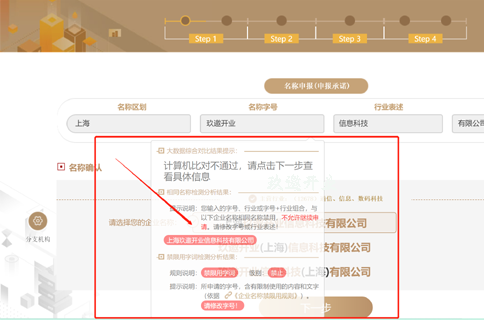 這就要求創(chuàng)業(yè)人員在核名前務(wù)必先檢查一下行業(yè)內(nèi)是否已經(jīng)有相同或是類(lèi)似的公司名稱(chēng),如果該公司名稱(chēng)已存在,需要果斷放棄,否則,即便前往工商部門(mén)核名也是不予通過(guò)的。