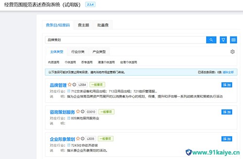 | 品牌策劃公司營(yíng)業(yè)執(zhí)照經(jīng)營(yíng)范圍查詢(xún) 品牌策劃公司營(yíng)業(yè)執(zhí)照經(jīng)營(yíng)參考:一般項(xiàng)目:專(zhuān)業(yè)設(shè)計(jì)服務(wù);圖文設(shè)計(jì)制作;企業(yè)形象策劃;廣告設(shè)計(jì)、代理;廣告制作;數(shù)字文化創(chuàng)意軟件開(kāi)發(fā);軟件外包服務(wù);數(shù)字技術(shù)服務(wù);攝影擴(kuò)印服務(wù);攝像及視頻制作服務(wù);信息系統(tǒng)集成服務(wù);數(shù)字內(nèi)容制作服務(wù)(不含出版發(fā)行);辦公服務(wù);軟件開(kāi)發(fā);廣告發(fā)布;組織文化藝術(shù)交流活動(dòng);市場(chǎng)營(yíng)銷(xiāo)策劃;禮儀服務(wù);文藝創(chuàng)作;信息咨詢(xún)服務(wù)(不含許可類(lèi)信息咨詢(xún)服務(wù));會(huì)議及展覽服務(wù);技術(shù)服務(wù)、技術(shù)開(kāi)發(fā)、技術(shù)咨詢(xún)、技術(shù)交流、技術(shù)轉(zhuǎn)讓、技術(shù)推廣;電競(jìng)競(jìng)賽組織;體育用品設(shè)備出租;戶外用品銷(xiāo)售;體育賽事策劃;組織體育表演活動(dòng);體育保障組織;電競(jìng)賽事策劃;票務(wù)代理服務(wù);互聯(lián)網(wǎng)銷(xiāo)售(除銷(xiāo)售需要許可的商品);體育競(jìng)賽組織;體育經(jīng)紀(jì)人服務(wù)。(除依法須經(jīng)批準(zhǔn)的項(xiàng)目外,憑營(yíng)業(yè)執(zhí)照依法自主開(kāi)展經(jīng)營(yíng)活動(dòng)) 品牌策劃公司營(yíng)業(yè)執(zhí)照經(jīng)營(yíng)參考:一般項(xiàng)目:品牌管理;市場(chǎng)營(yíng)銷(xiāo)策劃;交通及公共管理用標(biāo)牌銷(xiāo)售;體育用品及器材批發(fā);辦公服務(wù);工業(yè)設(shè)計(jì)服務(wù);體育用品及器材零售;廣告制作;平面設(shè)計(jì);照明器具銷(xiāo)售;信息技術(shù)咨詢(xún)服務(wù);數(shù)字內(nèi)容制作服務(wù)(不含出版發(fā)行);人工智能公共數(shù)據(jù)平臺(tái);銷(xiāo)售代理;技術(shù)服務(wù)、技術(shù)開(kāi)發(fā)、技術(shù)咨詢(xún)、技術(shù)交流、技術(shù)轉(zhuǎn)讓、技術(shù)推廣;互聯(lián)網(wǎng)銷(xiāo)售(除銷(xiāo)售需要許可的商品);軟件開(kāi)發(fā);國(guó)內(nèi)貿(mào)易代理;會(huì)議及展覽服務(wù);廣告設(shè)計(jì)、代理。(除依法須經(jīng)批準(zhǔn)的項(xiàng)目外,憑營(yíng)業(yè)執(zhí)照依法自主開(kāi)展經(jīng)營(yíng)活動(dòng)) 品牌策劃公司營(yíng)業(yè)執(zhí)照經(jīng)營(yíng)參考:一般項(xiàng)目:品牌管理;版權(quán)代理;餐飲管理;專(zhuān)業(yè)設(shè)計(jì)服務(wù);信息咨詢(xún)服務(wù)(不含許可類(lèi)信息咨詢(xún)服務(wù));信息技術(shù)咨詢(xún)服務(wù);會(huì)議及展覽服務(wù);市場(chǎng)營(yíng)銷(xiāo)策劃;企業(yè)形象策劃;項(xiàng)目策劃與公關(guān)服務(wù);包裝服務(wù);體育賽事策劃;工程和技術(shù)研究和試驗(yàn)發(fā)展;廣告制作;廣告發(fā)布;平面設(shè)計(jì);廣告設(shè)計(jì)、代理;組織文化藝術(shù)交流活動(dòng);技術(shù)服務(wù)、技術(shù)開(kāi)發(fā)、技術(shù)咨詢(xún)、技術(shù)交流、技術(shù)轉(zhuǎn)讓、技術(shù)推廣;婚慶禮儀服務(wù);攝像及視頻制作服務(wù);軟件開(kāi)發(fā);市場(chǎng)調(diào)查(不含涉外調(diào)查);食品銷(xiāo)售(僅銷(xiāo)售預(yù)包裝食品);物業(yè)管理;貨物進(jìn)出口;技術(shù)進(jìn)出口;工藝美術(shù)品及禮儀用品銷(xiāo)售(象牙及其制品除外);日用品銷(xiāo)售;日用百貨銷(xiāo)售;廚具衛(wèi)具及日用雜品批發(fā);食用農(nóng)產(chǎn)品批發(fā);食用農(nóng)產(chǎn)品零售;機(jī)械設(shè)備銷(xiāo)售;電子產(chǎn)品銷(xiāo)售;包裝材料及制品銷(xiāo)售;塑料制品銷(xiāo)售;紙制品銷(xiāo)售;辦公用品銷(xiāo)售;體育用品及器材批發(fā);食品添加劑銷(xiāo)售;體育用品及器材零售;文具用品批發(fā);文具用品零售;服裝服飾批發(fā);服裝輔料銷(xiāo)售;鞋帽批發(fā);鞋帽零售;計(jì)算機(jī)軟硬件及輔助設(shè)備批發(fā);計(jì)算機(jī)軟硬件及輔助設(shè)備零售;軟件銷(xiāo)售。(除依法須經(jīng)批準(zhǔn)的項(xiàng)目外,憑營(yíng)業(yè)執(zhí)照依法自主開(kāi)展經(jīng)營(yíng)活動(dòng))許可項(xiàng)目:演出經(jīng)紀(jì);廣播電視節(jié)目制作經(jīng)營(yíng);互聯(lián)網(wǎng)信息服務(wù)。(依法須經(jīng)批準(zhǔn)的項(xiàng)目,經(jīng)相關(guān)部門(mén)批準(zhǔn)后方可開(kāi)展經(jīng)營(yíng)活動(dòng),具體經(jīng)營(yíng)項(xiàng)目以相關(guān)部門(mén)批準(zhǔn)文件或許可證件為準(zhǔn)) 品牌策劃公司營(yíng)業(yè)執(zhí)照經(jīng)營(yíng)參考:一般項(xiàng)目:品牌管理;企業(yè)管理咨詢(xún);市場(chǎng)營(yíng)銷(xiāo)策劃;專(zhuān)業(yè)設(shè)計(jì)服務(wù);廣告設(shè)計(jì)、代理;廣告制作;技術(shù)服務(wù)、技術(shù)開(kāi)發(fā)、技術(shù)咨詢(xún)、技術(shù)交流、技術(shù)轉(zhuǎn)讓、技術(shù)推廣;信息咨詢(xún)服務(wù)(不含許可類(lèi)信息咨詢(xún)服務(wù));知識(shí)產(chǎn)權(quán)服務(wù)(專(zhuān)利代理服務(wù)除外);會(huì)議及展覽服務(wù);互聯(lián)網(wǎng)銷(xiāo)售(除銷(xiāo)售需要許可的商品)。(除依法須經(jīng)批準(zhǔn)的項(xiàng)目外,憑營(yíng)業(yè)執(zhí)照依法自主開(kāi)展經(jīng)營(yíng)活動(dòng)) 品牌策劃公司營(yíng)業(yè)執(zhí)照經(jīng)營(y