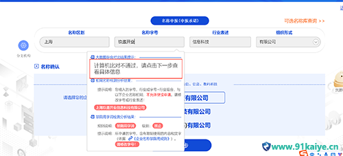 新注冊公司流程中,最難的步驟就是給公司取名,好聽的,有寓意的公司名稱往往在公司核名的時候都會被駁回,從而浪費注冊時間,那么上海注冊公司流程中如何查詢公司名稱是否可以使用? 1、打開上海一網(wǎng)通辦網(wǎng)址:https://yct.sh.gov.cn/portal_yct/,點擊開辦[如圖] 2、公司名稱組成要素公司名稱一般由四部分組成:行政區(qū)劃、字號、行業(yè)(非必填項)、組織形式。 如:上海(行政區(qū)劃)+玖邀開業(yè)(字號)+信息科技(行業(yè))+有限公司(組織形式) 。[如圖], 3、如何判斷公司名字是否可以使用(不通過)如果出現(xiàn)紅色文字,名稱禁用詞或在計算機(jī)對比不通過,說明需要重新起名,禁用詞是肯定用不了,計算對對比不通過,那么說明公司核名通過的概率非常低,需要提供備選名稱�!救鐖D】 4、如何判斷公司名字是否可以使用(通過)如果計算機(jī)對比通過,說明名稱可通過的概率非常高,正常情況下可以通過【如圖】 以上是玖邀開業(yè)小編整理的公司重名查詢(上海注冊公司流程中如何查詢公司名稱是否可以使用)相關(guān)知識,相信大家通過以上知識都已經(jīng)對此有了大致的了解,如果您還遇到什么問題,歡迎咨詢在線客服。 |