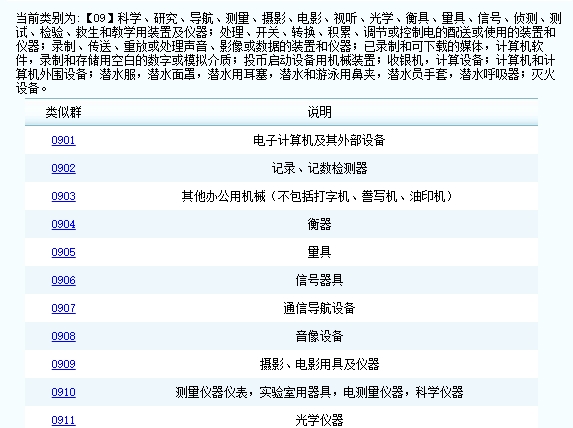 商標第九類包括哪些項,商標分類9類明細 【0901】電子計算機及其外部設(shè)備 【0902】記錄、記數(shù)檢測器 【0903】其他辦公用機械(不包括打字機、譽寫機、油印機) 【0904】衡器 【0905】量具 【0906】信號器具 【0907】通訊導(dǎo)航設(shè)備 【0908】音像設(shè)備 【0909】攝影、電影用具及儀器 【0910】測量儀器儀表,實驗室用器具,電測量儀器,科學(xué)儀器 【0911】光學(xué)儀器 【0912】光電傳輸材料 【0913】電器用晶體及碳素材料,電子、電氣通用元件 【0914】電器成套設(shè)備及控制裝置 【0915】電解裝置 【0916】滅火器具 【0918】工業(yè)用X光機械設(shè)備 【0919】安全救護器具 【0920】警報裝置,電鈴 【0921】眼鏡及附件 【0922】電池,充電器 【0923】電影片,已曝光材料 【0924】其他 以上是玖邀開業(yè)小編整理的商標第九類包括哪些項,商標分類9類明細相關(guān)知識,相信大家通過以上知識都已經(jīng)對此有了大致的了解,如果您還遇到什么問題,歡迎咨詢在線客服。 |