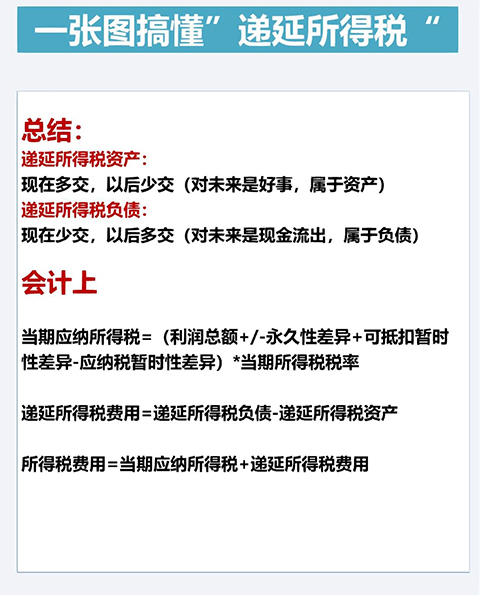 遞延所得稅費(fèi)用是會(huì)計(jì)上的一個(gè)概念,指的是由于會(huì)計(jì)準(zhǔn)則與稅法規(guī)定之間的差異,導(dǎo)致企業(yè)在一定時(shí)期內(nèi)確認(rèn)的所得稅費(fèi)用與按照稅法規(guī)定當(dāng)期應(yīng)繳納的所得稅金額之間的差異。這種差異會(huì)在未來期間內(nèi)逐漸得到轉(zhuǎn)回或確認(rèn)。 遞延所得稅費(fèi)用主要來源于可抵扣暫時(shí)性差異。當(dāng)企業(yè)資產(chǎn)的賬面價(jià)值小于其計(jì)稅基礎(chǔ),或負(fù)債的賬面價(jià)值大于其計(jì)稅基礎(chǔ)時(shí),就會(huì)產(chǎn)生可抵扣暫時(shí)性差異。這種差異在發(fā)生時(shí),企業(yè)會(huì)將其對所得稅的影響確認(rèn)為遞延所得稅資產(chǎn),并在未來期間內(nèi)轉(zhuǎn)回時(shí)確認(rèn)為遞延所得稅費(fèi)用。 遞延所得稅費(fèi)用的計(jì)算涉及遞延所得稅資產(chǎn)和遞延所得稅負(fù)債的變動(dòng)。具體計(jì)算公式如下: 遞延所得稅費(fèi)用=遞延所得稅負(fù)債的增加額+遞延所得稅資產(chǎn)的減少額-遞延所得稅負(fù)債的減少額-遞延所得稅資產(chǎn)的增加額 遞延所得稅資產(chǎn)的確認(rèn): 1.確認(rèn)條件: 應(yīng)以未來期間可能取得的應(yīng)納稅所得額為限(有條件的確認(rèn))即,遞延所得稅資產(chǎn)=基數(shù)×未來差異轉(zhuǎn)回期間的稅率 其中:基數(shù)(二者孰低) (1)可抵扣暫時(shí)性差異 (2)預(yù)計(jì)未來期間很可能取得的應(yīng)納稅所得額 2.會(huì)計(jì)分錄: 借:遞延所得稅資產(chǎn) 貸:商譽(yù) 資本公積(合并財(cái)務(wù)報(bào)表的評估減值) 其他綜合收益(如綜【債】的公允價(jià)值的變動(dòng)) 盈余公積/利潤分配---未分配利潤(會(huì)計(jì)政策變更或前期差錯(cuò)更正) 所得稅費(fèi)用(最常見) 3.遞延所得稅資產(chǎn)的確認(rèn)應(yīng)以未來期間很可能取得的應(yīng)納稅所得額為限。 在判斷企業(yè)于可抵扣暫時(shí)性差異轉(zhuǎn)回的未來期間能否產(chǎn)生足夠的應(yīng)納稅所得額時(shí),應(yīng)考慮以下兩個(gè)方面的影響: (1)通過正常的生產(chǎn)經(jīng)營活動(dòng)能夠?qū)崿F(xiàn)的應(yīng)納稅所得額。 (2)以前期間產(chǎn)生的應(yīng)納稅暫時(shí)性差異在未來期間轉(zhuǎn)回時(shí)將產(chǎn)生應(yīng)納稅所得額的增加額。 4.特殊情況(如:未彌補(bǔ)虧損和稅款抵減) 相關(guān)規(guī)定: (1)對于按照稅法規(guī)定可以結(jié)轉(zhuǎn)以后年度的未彌補(bǔ)虧損的稅款抵減,應(yīng)視同可抵扣暫時(shí)性差異處理。 (2)應(yīng)當(dāng)以很可能取得的應(yīng)納稅所得額為限,確認(rèn)相應(yīng)的遞延所得稅資產(chǎn),同時(shí)減少確認(rèn)當(dāng)期的所得稅費(fèi)用。 會(huì)計(jì)分錄: 借:遞延所得稅資產(chǎn) 貸:所得稅費(fèi)用 不確認(rèn)遞延所得稅資產(chǎn)的特殊情形: 如果企業(yè)發(fā)生的某項(xiàng)交易或事項(xiàng)不是企業(yè)合并,并且交易發(fā)生時(shí)既不影響會(huì)計(jì)利潤也不影響應(yīng)納稅所得額,且該項(xiàng)交易中產(chǎn)生的資產(chǎn)、負(fù)債的初始確認(rèn)金額與其計(jì)稅基礎(chǔ)不同,產(chǎn)生可抵扣暫時(shí)性差異的,會(huì)計(jì)準(zhǔn)則規(guī)定在交易或事項(xiàng)發(fā)生時(shí)不確認(rèn)相關(guān)的遞延所得稅資產(chǎn)。(如:加計(jì)扣除) |