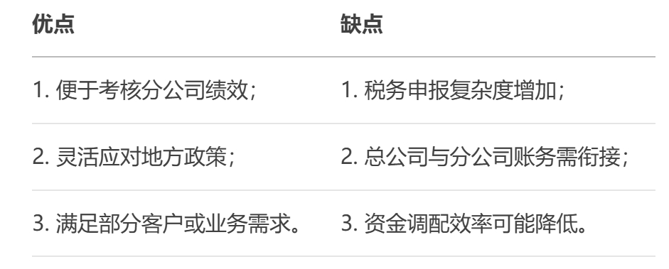 分公司獨立核算是指分公司在財務上獨立進行會計核算、編制報表并自負盈虧的一種管理模式。盡管分公司在法律上不具備獨立法人資格,但獨立核算能賦予其一定的自主經營權。以下是關于分公司獨立核算的關鍵要點及注意事項: 一、獨立核算的特點 1. 財務獨立性 - 獨立開設銀行賬戶,自行處理收支。 - 獨立建賬、編制財務報表(如資產負債表、利潤表)。 - 可能需向稅務機關獨立申報納稅(如增值稅、企業(yè)所得稅等)。 2. 稅務處理 - 企業(yè)所得稅:若分公司獨立核算,可能需作為納稅人就地預繳企業(yè)所得稅(需根據(jù)當?shù)卣叽_定);若為非獨立核算,通常由總公司匯總納稅。 - 增值稅:無論是否獨立核算,分公司一般需在經營地申報繳納增值稅。 3. 經營管理權 - 可自主簽訂合同、管理成本、核算利潤。 - 總公司仍對分公司的債務承擔最終責任。 二、獨立核算的優(yōu)缺點 三、操作要點 1. 稅務登記與備案 - 分公司需在所在地辦理稅務登記,明確核算方式(獨立或非獨立)。 - 若獨立核算企業(yè)所得稅,需向稅務機關備案。 2. 內部管理流程 - 明確分公司與總公司的權責劃分(如采購、銷售、費用審批)。 - 建立內部交易定價機制,避免關聯(lián)交易風險。 3. 財務報表合并 - 總公司需將分公司的財務數(shù)據(jù)匯總合并,編制集團合并報表。 四、適用場景 1. 業(yè)務規(guī)模較大:分公司業(yè)務復雜,需獨立考核利潤。 2. 異地經營:當?shù)卣咭螵毩⒓{稅或開設銀行賬戶。 3. 戰(zhàn)略需求:為未來子公司化或引入外部投資做準備。 五、風險提示 1. 稅務風險 - 若未規(guī)范處理關聯(lián)交易,可能引發(fā)稅務稽查(如轉移定價調整)。 2. 法律風險 - 分公司獨立核算不改變其法律地位,總公司仍需承擔連帶責任。 3. 管理成本 - 需配置獨立財務團隊,增加人力與合規(guī)成本。 六、決策建議 - 選擇獨立核算前需評估: 1. 分公司的業(yè)務規(guī)模與盈利能力; 2. 稅務成本差異(如總分公司稅率差異); 3. 總公司的管控能力與資源支持。 若業(yè)務簡單或處于初期階段,可優(yōu)先選擇非獨立核算以簡化流程;若需激勵分支機構或滿足合規(guī)要求,獨立核算更具優(yōu)勢。 |