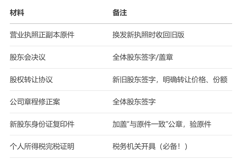 > ⚠️ 注意:上海已實行“先稅后登”政策,無完稅證明則無法辦理工商變更!