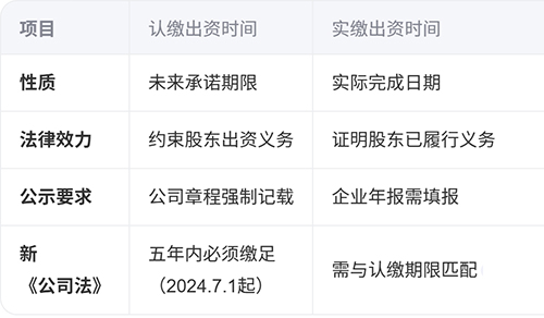 注冊公司出資時間是指股東承諾繳納或?qū)嶋H繳納認(rèn)繳出資的時限,依據(jù)《公司法》及公司章程約定確定,具體分為認(rèn)繳出資時間和實繳出資時間兩種類型,其含義及法律要求如下: 一、認(rèn)繳出資時間 定義 股東在公司章程中承諾完成出資的最終期限,是股東履行出資義務(wù)的法律依據(jù)。 填寫規(guī)則 需明確到具體日期(如2030年12月31日); 分期出資的,每期均需約定獨立時限。 法律意義 未按期繳足需承擔(dān)違約責(zé)任,并可能影響公司信用。 二、實繳出資時間 定義 股東實際將資金注入公司賬戶或完成非貨幣資產(chǎn)過戶的具體日期。 填寫規(guī)則 貨幣出資:以銀行入賬時間為準(zhǔn); 非貨幣出資:以權(quán)屬轉(zhuǎn)移登記日為憑據(jù)。 特殊情形 未實際出資時,年報中實繳金額填“0”,時間填報告期末日(如12月31日)。 三、認(rèn)繳與實繳的區(qū)別 四、關(guān)鍵注意事項 五年實繳期限 2024年7月1日后新設(shè)公司:須自成立日起5年內(nèi)繳足全部認(rèn)繳出資; 存量公司過渡期:2027年6月30日前需調(diào)整出資期限至5年內(nèi)(如原期限超5年)。 信息一致性 企業(yè)年報公示的實繳金額與時間需真實,否則可能引發(fā)信用風(fēng)險或股東責(zé)任糾紛。 章程核心地位 出資時間以公司章程記載為準(zhǔn),修改需經(jīng)股東會2/3以上表決通過。 示例場景: 某公司2025年1月1日注冊,注冊資本500萬元,章程約定: 認(rèn)繳時間:2030年1月1日(未超5年期限); 實繳時間:若股東2025年6月1日轉(zhuǎn)賬100萬元,則填寫該日期;若未出資,年報中實繳金額填“0”,時間填“2025年12月31日”。 |